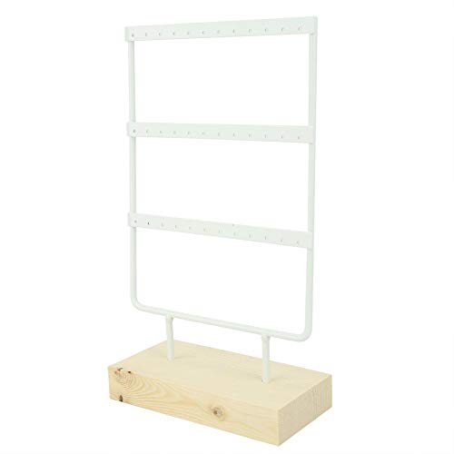 Jingyi Porta Gioielli, Porta Gioielli in Metallo a 36 Fori, portaoggetti in Metallo con Organizer per Gioielli e espositore per Orecchini, Collana, Organizer con Base in Legno per Bracciale (Bianco)