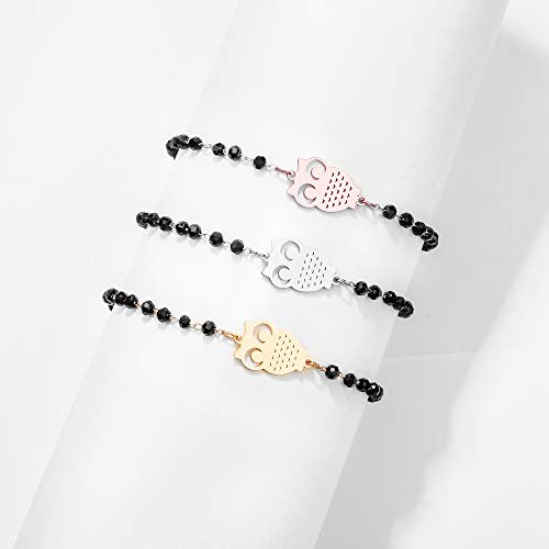 JinHan Bracciale Donna Ciondolo Gufo, Gioielli Moda Ragazza Glamour, Catena di Perline di Cristallo Nero antiallergico in Acciaio Inossidabile Argento/Oro/Oro Rosato/Oro/Oro Rosa