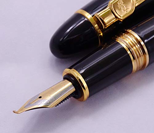 Jinhao 159 - Penna stilografica con pennino curvo, da fine a ampio, colore nero con finiture dorate e astuccio