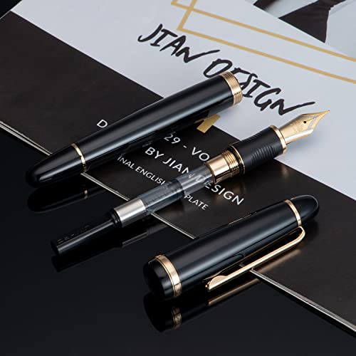 Jinhao X850 - Penna stilografica, pennino medio, nero con clip dorata in metallo