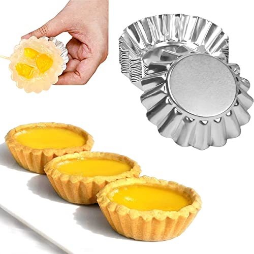 JINJUMEI 30 Pezzi Stampi di Crostate di Uova Aluminum Antiaderente e Riutilizzabile Pirottini in Acciaio Formine,Stampi di Crostate di Uova Aluminum, Stampo Cestini Frolla, Stampo per Torta Cupcake