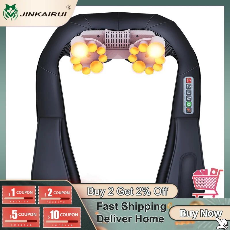 Jinkairui Electrical Neck Shoulder Back Body Massager Shiatsu Kneading Infrared Heated Massage Car Home Masaj Device with Box