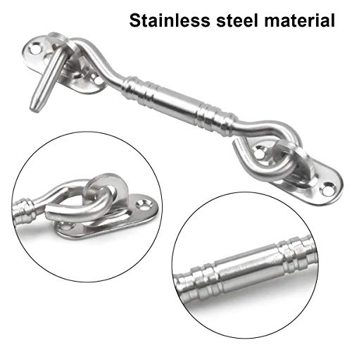 Jinlaili 2Pezzi Gancio Della Cabina Chiusura a Occhiello Acciaio Inossidabile, Gancio Finestra, Gancio della Porta della Cabina, Occhio Porta Chiavistello Finestra Catch Cancello Serratura (8 pollici)