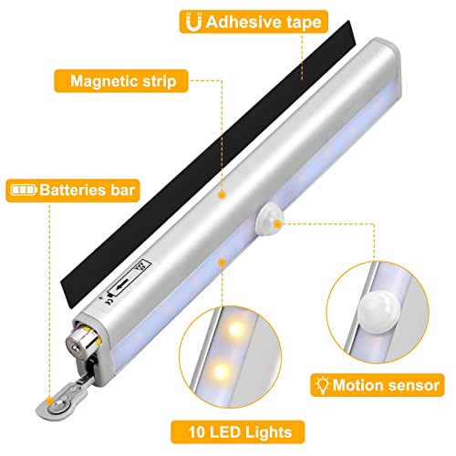 Jinlaili Confezione da 2 luci wireless sotto l'armadio, 10 luci LED con sensore di movimento per armadio, luci sotto armadio con striscia magnetica, barra luci LED per scale da cucina, luce calda