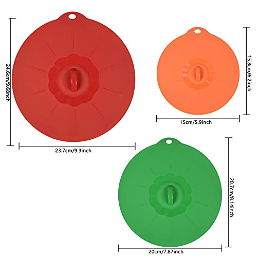 Jinlaili 3 Pack Coperchi in Silicone Riutilizzabile, Coperchio Silicone, Coperchio in Silicone per Alimenti, Cover in Silicone, Senza BPA, per Padelle, Piatti,Scodelle, (Rosso, Verde Scuro, Arancione)