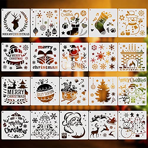 Jinlaili Modello di Pittura di Natale, 20 Pezzi Stencil Riutilizzabili, plastica Disegno Stencil, Pittura per Bambini,Stencil da Disegno, Natale Stencil di Pittura, Decorazione di Natale Fai da Te