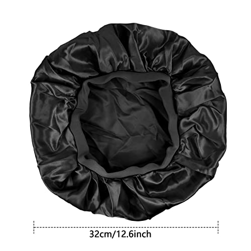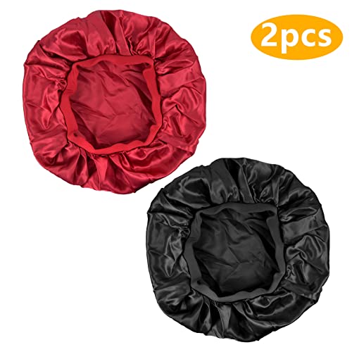 Jinlaili 2 Pezzi Berretto da Notte Raso, Cuffia Capelli Ricci, Cappuccio Elastico Regolabile, Banda Larga Cappello in Seta, Berretto da Notte Traspirante, Pelo per Forniture per Dormire (Nero&Rosso)