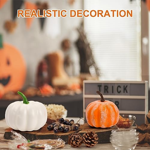 ❤ 【Perfetta decorazione autunnale】 Questo set di decorazioni per la zucca è molto realistico e può regalarti una forte vacanza autunnale e un'atmosfera di festa. Perfetto per il Ringraziamento, Halloween e qualsiasi decorazione per feste a tema autunnale. E sono anche buoni oggetti di scena che possono essere riutilizzati.