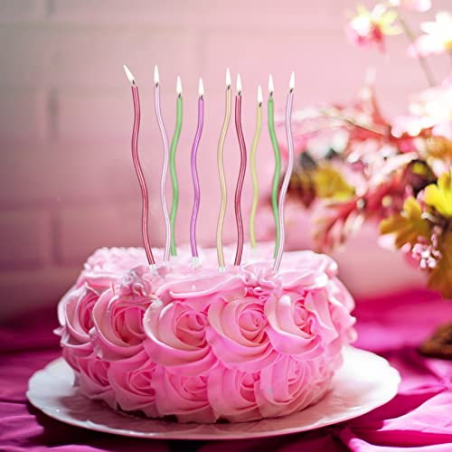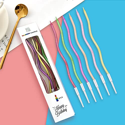 Jinlaili 12 Pezzi Candele di Compleanno a Spirale, Candele di Compleanno Lunghe, Candele Colorate Candele Torta Compleanno con Supporto, Partylite Candele Decorazioni Torte Compleanno
