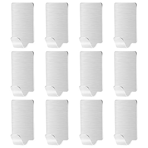 Jinlaili 12 Pezzi Ganci Autoadesivo, Senza Forare Gancio in Acciaio Inox, Oilproof Ganci da Parete, Ganci Portasciugamani impermeabile, Ganci per Cucina Bagno Asciugamani Vestiti Chiavi Porta