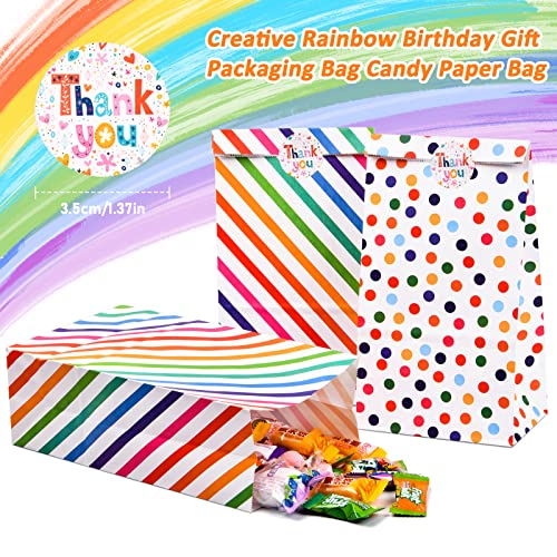 ★ 【Design】 Sacchetti regalo di carta stampati con punti e strisce arcobaleno, eleganti e semplici, adorabili e accattivanti, perfetti per Natale, Halloween, matrimoni, compleanni o altre celebrazioni.