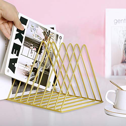 【Semplice ed Elegante】La superficie galvanica color oro non si sbiadirà. Il design triangolare è semplice e alla moda, non solo può essere utilizzato come libreria per scrivania, ma anche per decorare il tuo desktop.
