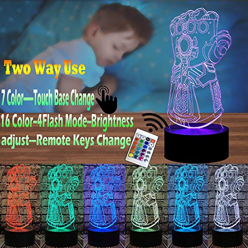 Jinlycoo Guanto da notte a LED con illusione 3D per bambini guanto dell'infinito Marvel Avengers Infinity War cambio USB, 16 colori decorazione per la casa regalo di compleanno di vacanza