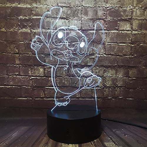 Jinlycoo Stitch Lampada per camera da letto 3D Visual Cartoon LED Luce notturna 7 Colori USB Touch Telecomando Cambio Camera Decor Tavolo Mood Lava Sonno Luce Giocattolo Regalo per Ragazze