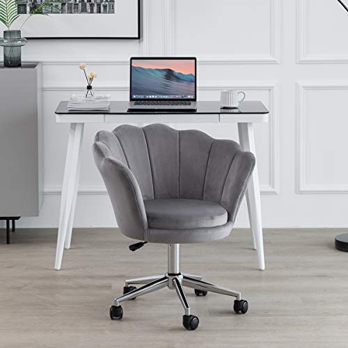 JINPALAY Sedia Scrivania in Velluto Sedia Ufficio Ergonomica Cagirevole Altezza Regolabile Sedia per Computer Sgabello da Lavoro con Rotelle 150 kg
