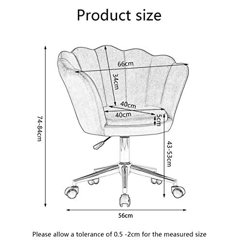 Dimensioni della sedia da ufficio: 66 x 40 x 74 - 84 cm, la seduta offre una zona salotto di 40 cm (larghezza) per 40 cm (profondità), seduta imbottita di 5 cm e braccioli da 34 cm. Sedia da ufficio è facile da installare, istruzioni di montaggio e tutti gli strumenti necessari per il montaggio di questa sedia.