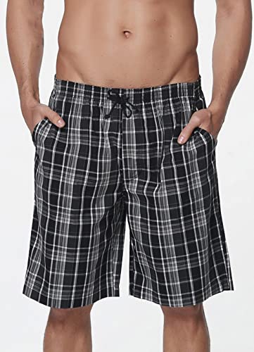 JINSHI Pantaloncini da Uomo in Cotone per Pigiama a Quadretti
