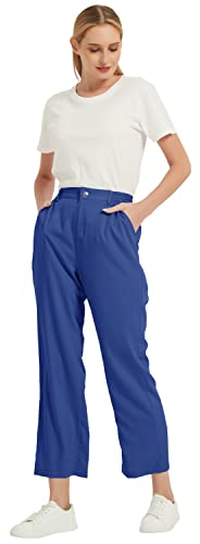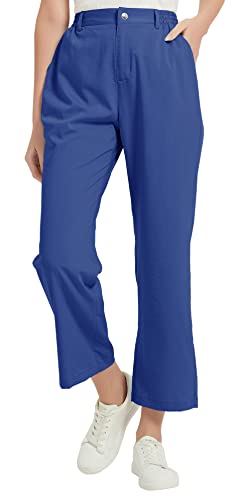 JINSHI Pantaloni Donna Eleganti Pantaloni Leggero Lavoro Golf Pantalone Elastica Vita Alta a Gamba Larga con Cerniera Blu XXL