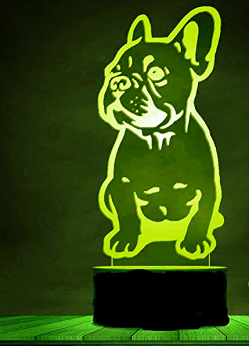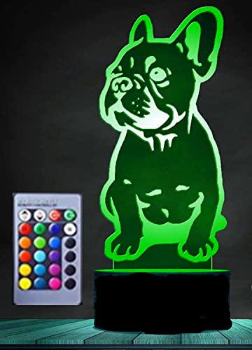 Jinson well Lampada 3D a forma di bulldog francese, luce notturna, illusione ottica, 7 colori cangianti, da tavolo, con base in acrilico, cavo USB