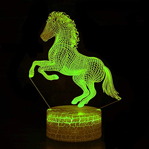 Jinson well Lampada 3D a forma di cavallo, luce notturna con 7 colori cangianti, touch switch, da tavolo, decorazione da tavolo, lampada con acrilico, Flat ABS, cavo USB