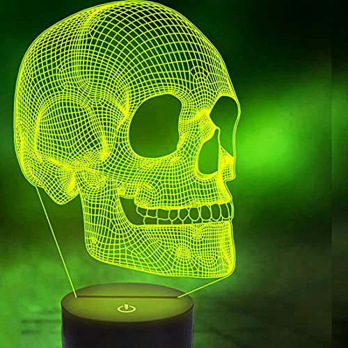 Jinson well Lampada a LED 3D a forma di teschio, luce notturna, 7 colori cangianti, interruttore touch switch, tavolo da scrivania, lampada con cavo USB in acrilico