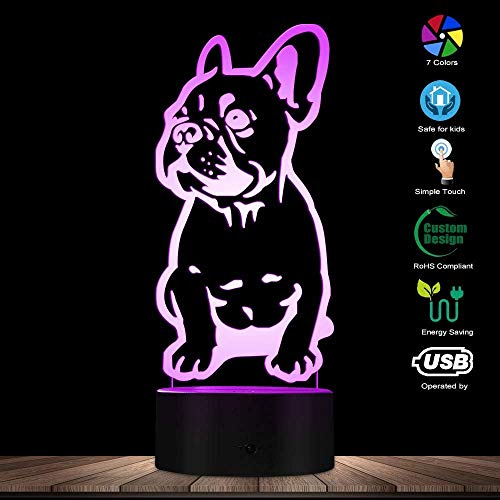 Jinson well 3D - Lampada notturna a forma di bulldog francese, 7 colori cangianti, decorazione da scrivania, regalo di Natale con USB giocattolo