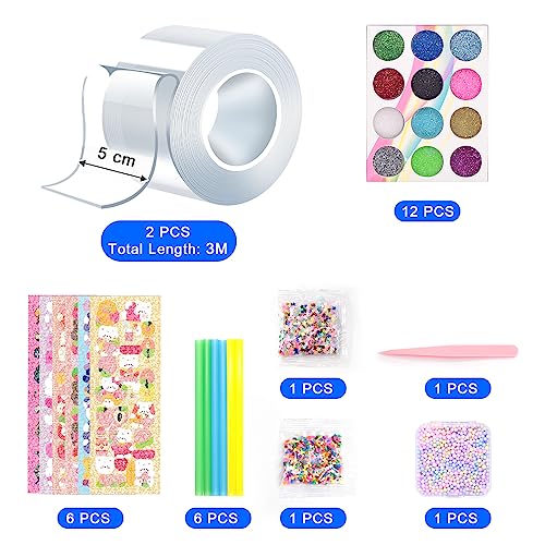Tape Bubble Kit per Bambini: Riceverete un set di 31 pezzi, tra cui 2 rotoli di colla nano trasparente (3m), 1 scatola di palline di schiuma colorate, 1* palline di zucchero, 1* pinzette, 1* pentagramma colorato, 6* adesivi, 6* cannelli colorati e 12* paillettes. Questo set non è solo un ottimo giocattolo per il fai da te, ma anche una necessità pratica nella vita di tutti i giorni.