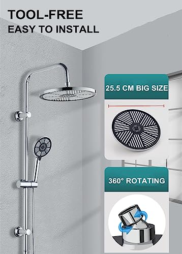 JINYOMFLY Soffione per Doccia Fisso, 25CM Soffione Doccia Grande, Soffione Doccia a Pioggia Alta Pressione, Soffioni Docce Anticalcare, Testa Doccia Regolabile 360°