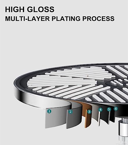 【ALTA QUALITÀ E FACILE INSTALLAZIONE】Soffione doccia rotondo realizzato in ABS di alta qualità, superficie cromata, effetto specchio lucido, può prevenire efficacemente lo scolorimento e la corrosione, durevole. Con filettatura G1/2", può essere fissato a qualsiasi braccio doccia standard a parete o a soffitto, si installa rapidamente in 5 minuti, senza bisogno di attrezzi.