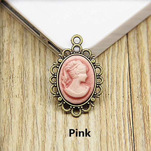 JinYu - Confezione da 5 ciondoli rotondi in bronzo anticato, lunetta rotonda con perline e vassoi di perle, per bracciali, collane, gioielli fai da te (bellezza rosa)