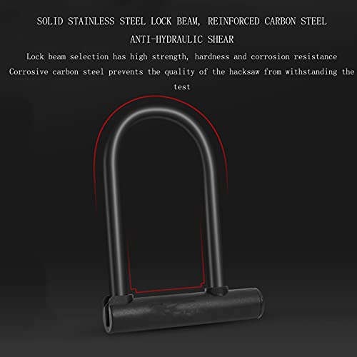 ALTA QUALITÀ, DUREVOLE E FORTE: il lucchetto a U per bicicletta è realizzato in acciaio al carbonio spesso 14 mm e nucleo di bloccaggio in lega di zinco. Ha un'elevata sicurezza e resistenza al taglio, qualità affidabile, forte, durevole, non facile da danneggiare e invecchiamento e lunga durata,