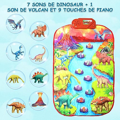 Jirmerp Tappeto Musicale Bambini con 17 Suoni,Tappeto Musicale Tema dei Dinosauri Tappeto da Ballo Regalo di Compleanno di Natale per Bambini