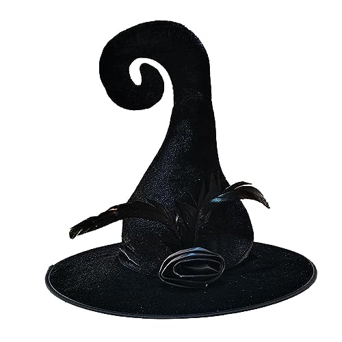 JISADER Cappello da donna strega Cappelli per adulti con piume di rose Accessorio per costume a punta Cappello da strega Cappello da mago per Halloween Party,