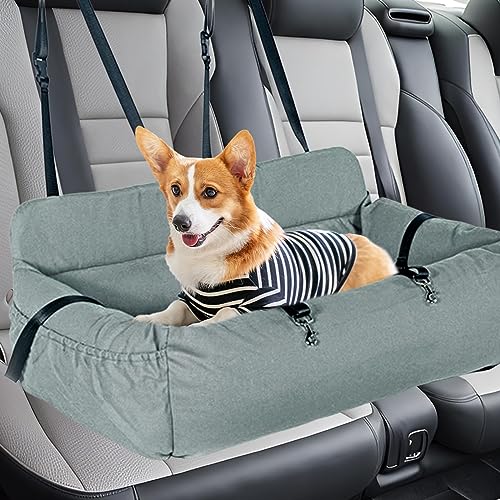 JISADER Seggiolino Auto per Cani, Cuccia Cane Comodo, Divano Imbottito Rimovibile, Lettino per Cani per la Maggior Parte Delle Automobili, Camion, SUV, Verde grigio