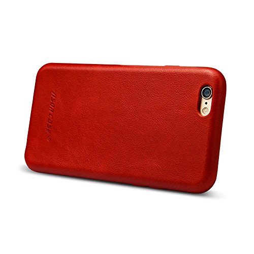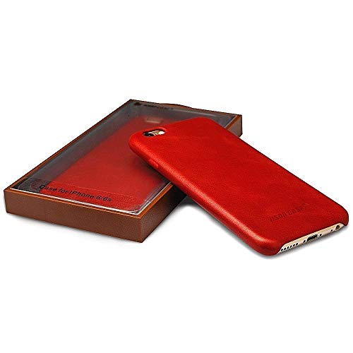 JISONCASE - Custodia protettiva per iPhone 6/6s, in vera pelle, sottile, con chiusura a scatto, per iPhone 6/6s, vintage, colore: Rosso JS-I6S-02A30