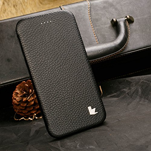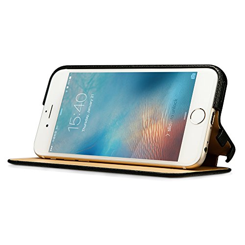 Jisoncase - Custodia ultra sottile per Apple iPhone 6 (4.7''), in vera pelle, design a portafoglio, con supporto, non compatibile con iPhone 5 5s 5c 4 4s iPad Air 4, 4.7'' Genuine Black, iPhone 6 custodia in pelle bovina