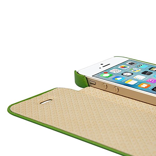 Jisoncase Fashion Folio Premium in similpelle per iPhone 5/5S, colore: Nero, Ecopelle, Green, iPhone 5/5S/SE