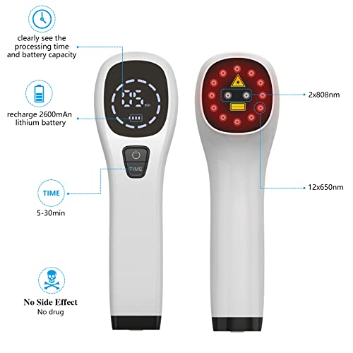 Jitesy Dispositivo per terapia a luce rossa, antidolorifico portatile per luce infrarossa, dispositivo laser freddo dotato di occhiali con sonde 650 nm 808 nm per dolori muscolari ginocchia posteriori