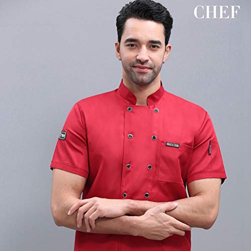 Jitong Giacca da Cuoco Manica Corta da Uomo Traspirante Uniforme da Lavoro per Pasticcere Pizzaiolo Camerieri - Rosso, M