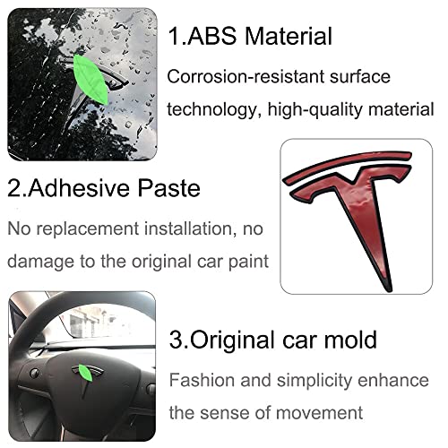 JIUHE Automobile 3D Aspetto Autoadesivo Volante/Tronco Anteriore/Tronco Posteriore Logo Autoadesivo Cover Emblema Decalcomanie distintive 3pcs / Impostare for Tesla Model 3 / Y 2021