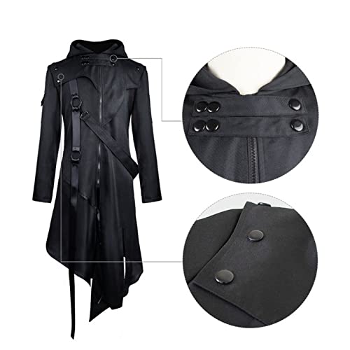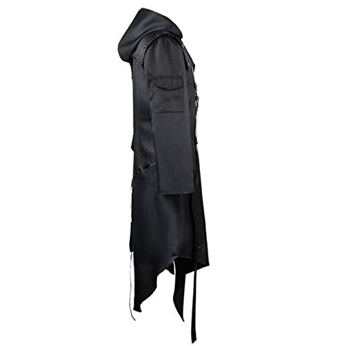 Jiumaocleu Cappotti lunghi da uomo, Steampunk Vintage con cappuccio, giacca antivento caldo medievale gotico vittoriano irregolare tailcoat Halloween costume di Natale S-5XL, Nero, S