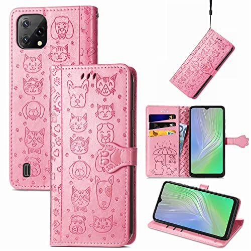 JIUNINE Cover per Blackview A55 / OSCAL C60, Custodia Libro in Pelle Portafoglio Flip Case Antiurto con Modello di Cane e Gatto [Porta Carte] [Magnetica] [Interno TPU] per OSCAL C60, Rosa