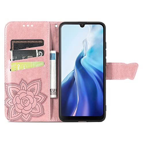 JIUNINE Cover Blackview OSCAL C20, Custodia Libro in Pelle Portafoglio Case Flip Antiurto con Disegni di Farfalla [Porta Carte] [Magnetica] [Interno TPU] per Blackview OSCAL C20, Oro rosa