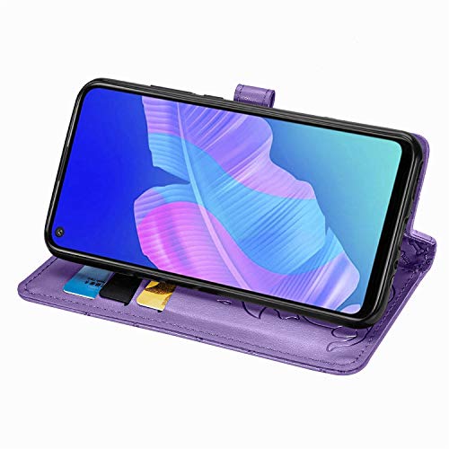 JIUNINE Cover Huawei P40 Lite E, Custodia Libro in Pelle Portafoglio Flip Case Antiurto con Modello di Cane e Gatto [Porta Carte] [Magnetica] [Interno TPU] per Huawei P40 Lite E, Viola
