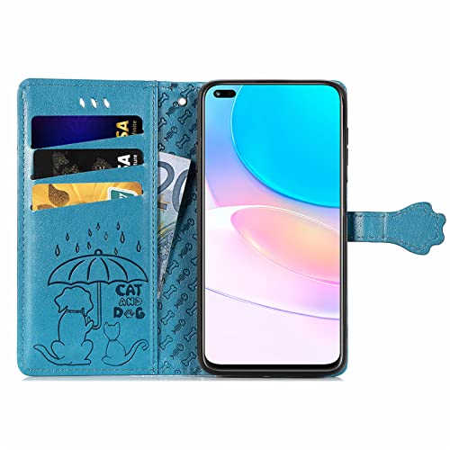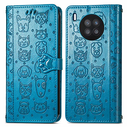 JIUNINE Cover Huawei Nova 8i / Honor 50 Lite, Custodia Libro in Pelle Portafoglio Flip Case Antiurto con Modello di Cane e Gatto [Porta Carte] [Magnetica] per Huawei Nova 8i, Blu