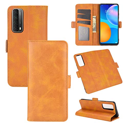 JIUNINE Cover Huawei P Smart 2021, Custodia Libro in Pelle Portafoglio Case Flip Antiurto con Interno TPU [Supporto Stand] [Porta Carte] [Magnetica] per Huawei P Smart 2021 Smartphone, Giallo
