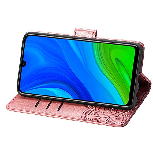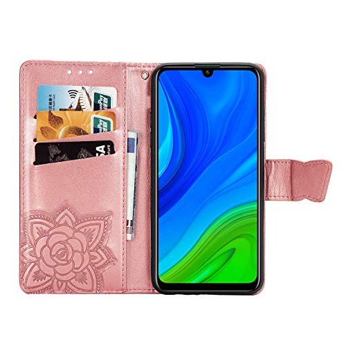 JIUNINE Cover Huawei P Smart 2020, Custodia Libro in Pelle Portafoglio Case Flip Antiurto con Disegni di Farfalla [Porta Carte] [Magnetica] [Interno TPU] per Huawei P Smart 2020, Oro rosa