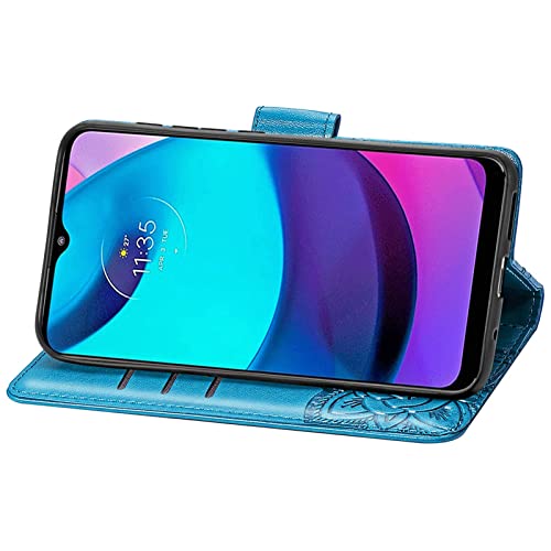 JIUNINE Cover Motorola Moto E20 / E30 / E40, Custodia Libro in Pelle Portafoglio Case Flip Antiurto con Disegni di Farfalla [Porta Carte] [Magnetica] [Interno TPU] per Moto E40 / E20, Blu