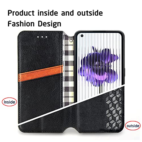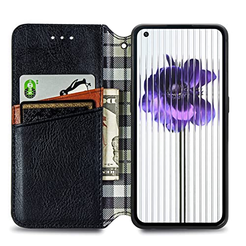 JIUNINE Cover per Nothing Phone 1, Custodia Cover a Libro in Pelle Portafoglio Flip Caso Antiurto con Motivo a Losanga 3D [Porta Carte] [Adsorbimento Magnetico] per Nothing Phone 1, Nero
