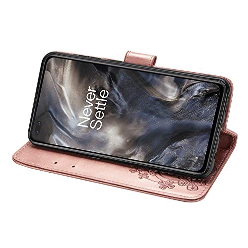 JIUNINE Cover OnePlus Nord, Custodia Libro in Pelle Portafoglio Case Flip Antiurto con Disegni in Rilievo [Porta Carte] [Magnetica] [Interno TPU] per OnePlus Nord, Oro rosa